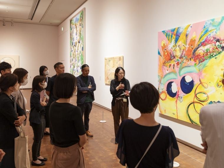 展示室で対話を通した鑑賞を体験できる豊かな時間。学校の教員や指導主事、美術館の学芸員が共にグループ活動をします。立場を超えて多様な考え方を共有しながら、こどもたちの鑑賞教育について真剣に考えるワークです。