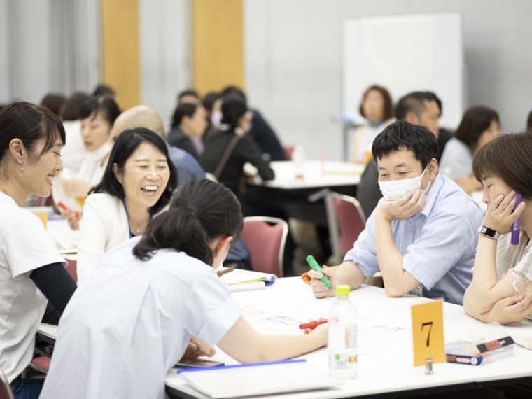 2日間の研修で得た学びをふりかえる最終プログラム。お互いの思いや知識を共有しながら集合知を生み出し、また明日からの現場に活かせる学びへと昇華させます。