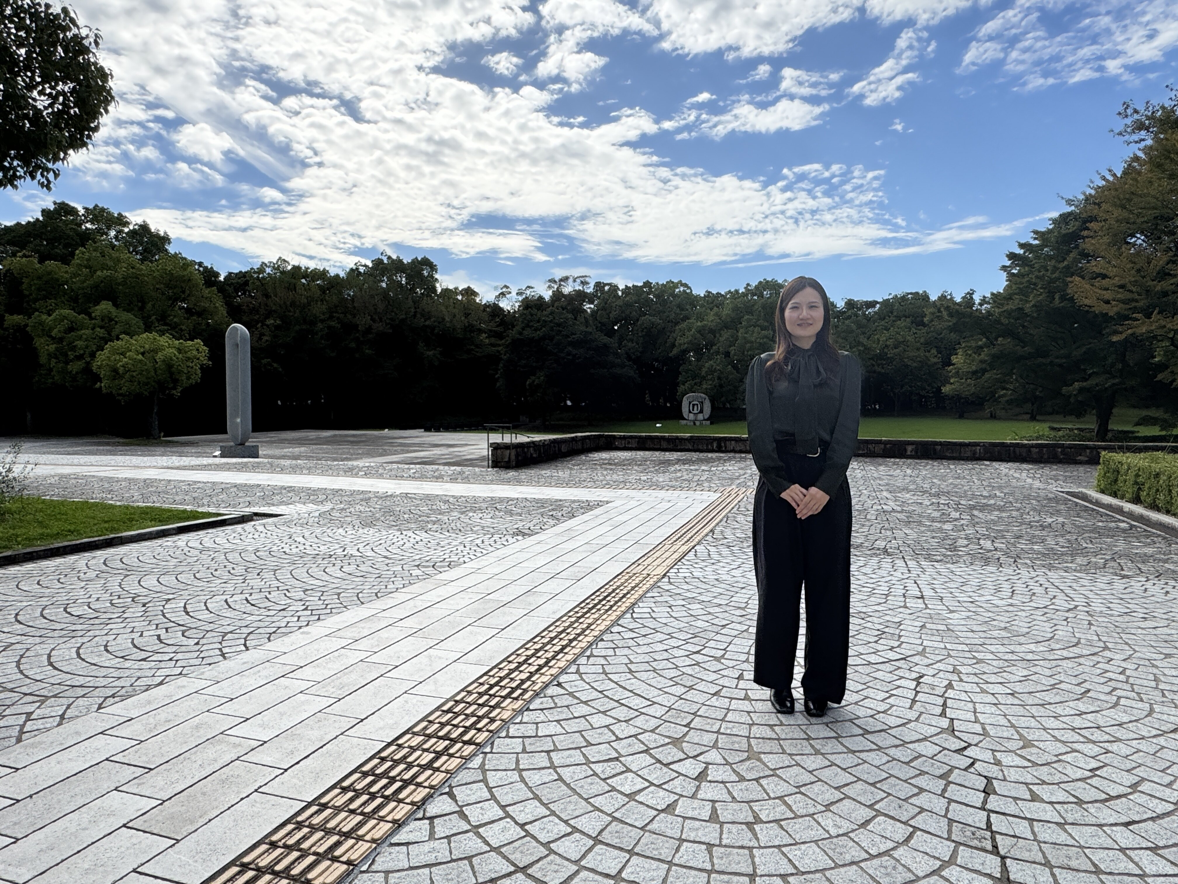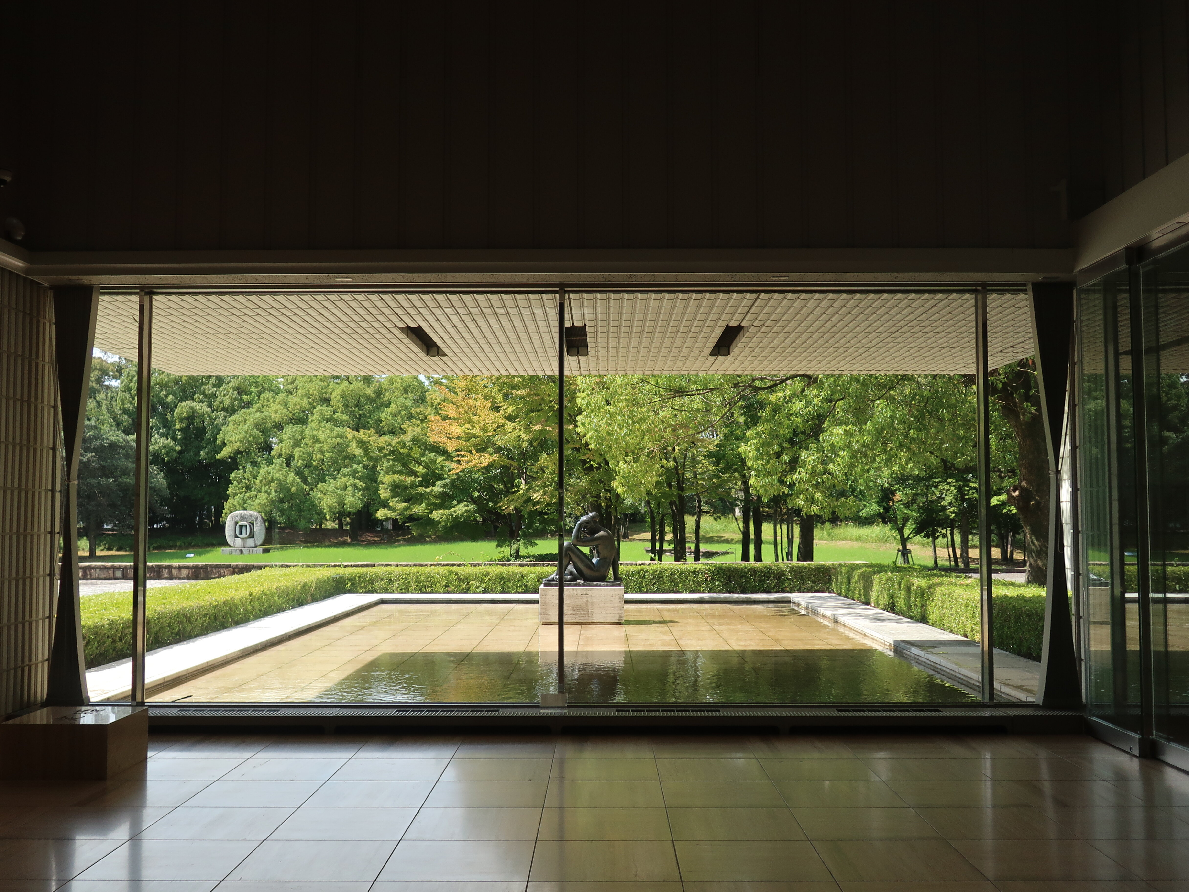The Museum of Fine Arts, Gifu, is located within the verdant grounds of the Prefectural Citizens' Cultural Forest, about a 10-minute walk from JR Nishi-Gifu Station. A small stream flows among the trees, and various sculptures are positioned along the walking paths. It was late September, when we visited for the interview, just when the sunlight was beginning to carry hints of autumn. The leaves on the trees were also starting to show faint tints of autumnal color.