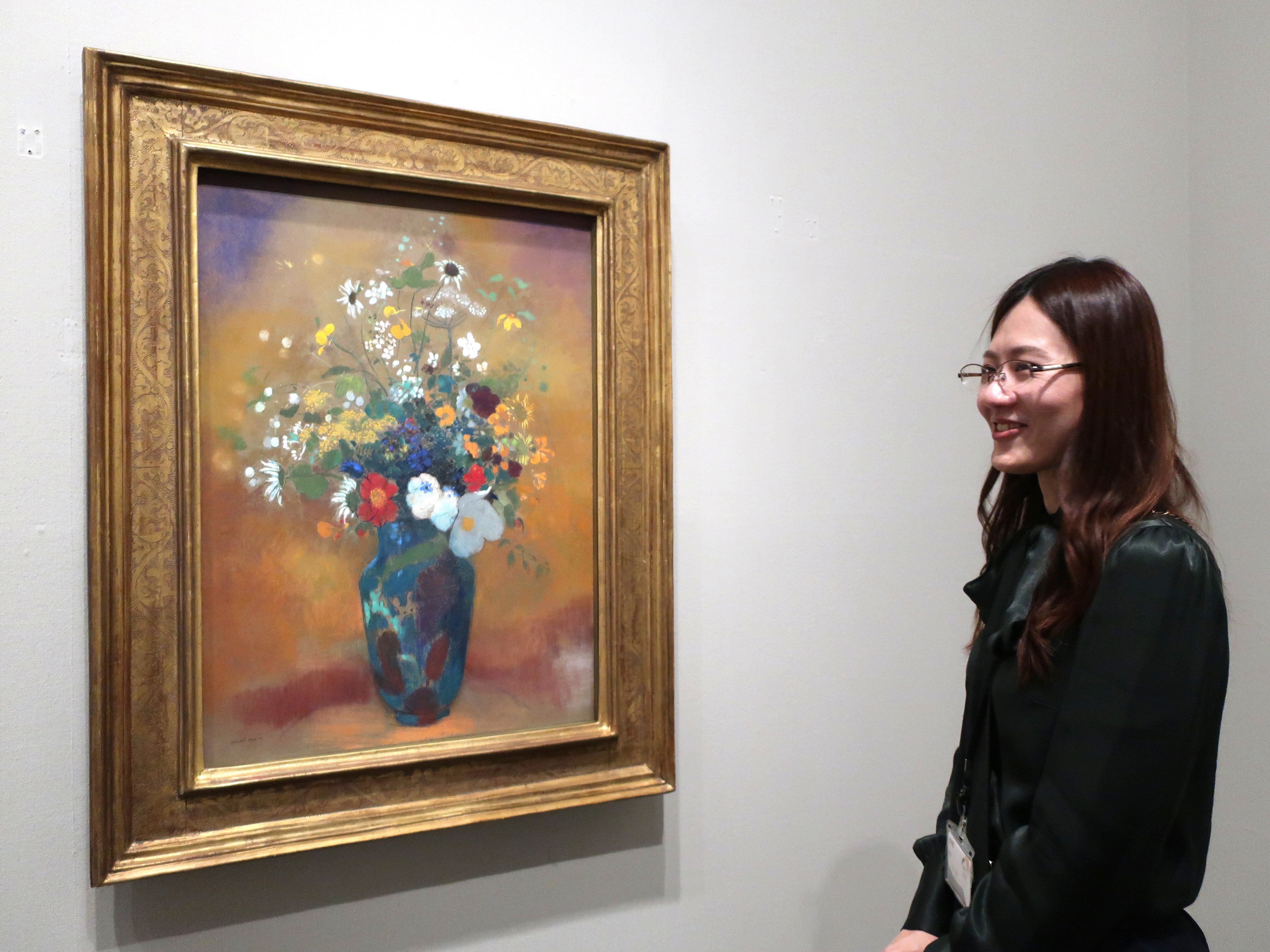 “To display the artwork, we have adjusted the lighting to allow visitors to appreciate the brilliance of the colors Redon used at the time as faithfully as possible. In his later years, Redon created numerous works featuring flowers arranged in vases like this one, employing various media such as oil paint and pastels, and exploring rich variations in background and composition. Among them, this work stands out for its meticulously crafted composition and carefully executed style that allows the image to unfold and expand. Most of all, it truly is a beautiful piece, isn't it?” exclaimed Matsuoka.