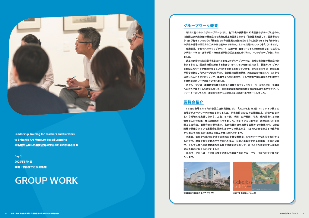 2025年8月4~5日に京都国立近代美術館と京都テルサで開催された「美術館を活用した鑑賞教育の充実のための指導者研修」のWEB報告書が完成しました。